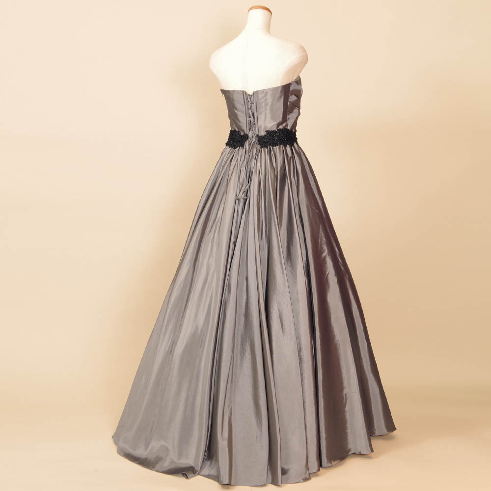 シルバーカラーのどんな場面にも馴染み、様々なタイプの方にも良く似合うカラードレスです。
