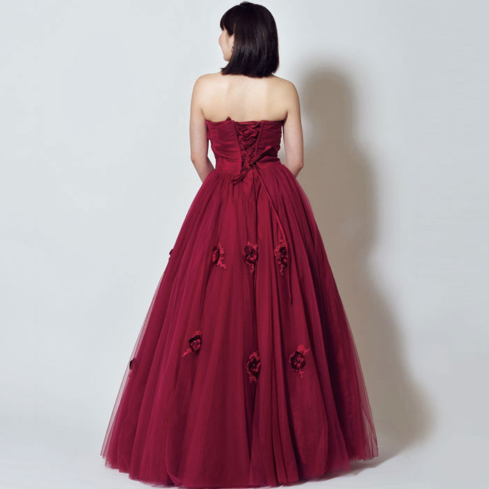 落ちつきのある熟成されたワインのような大人のフラワーモチーフカラードレス