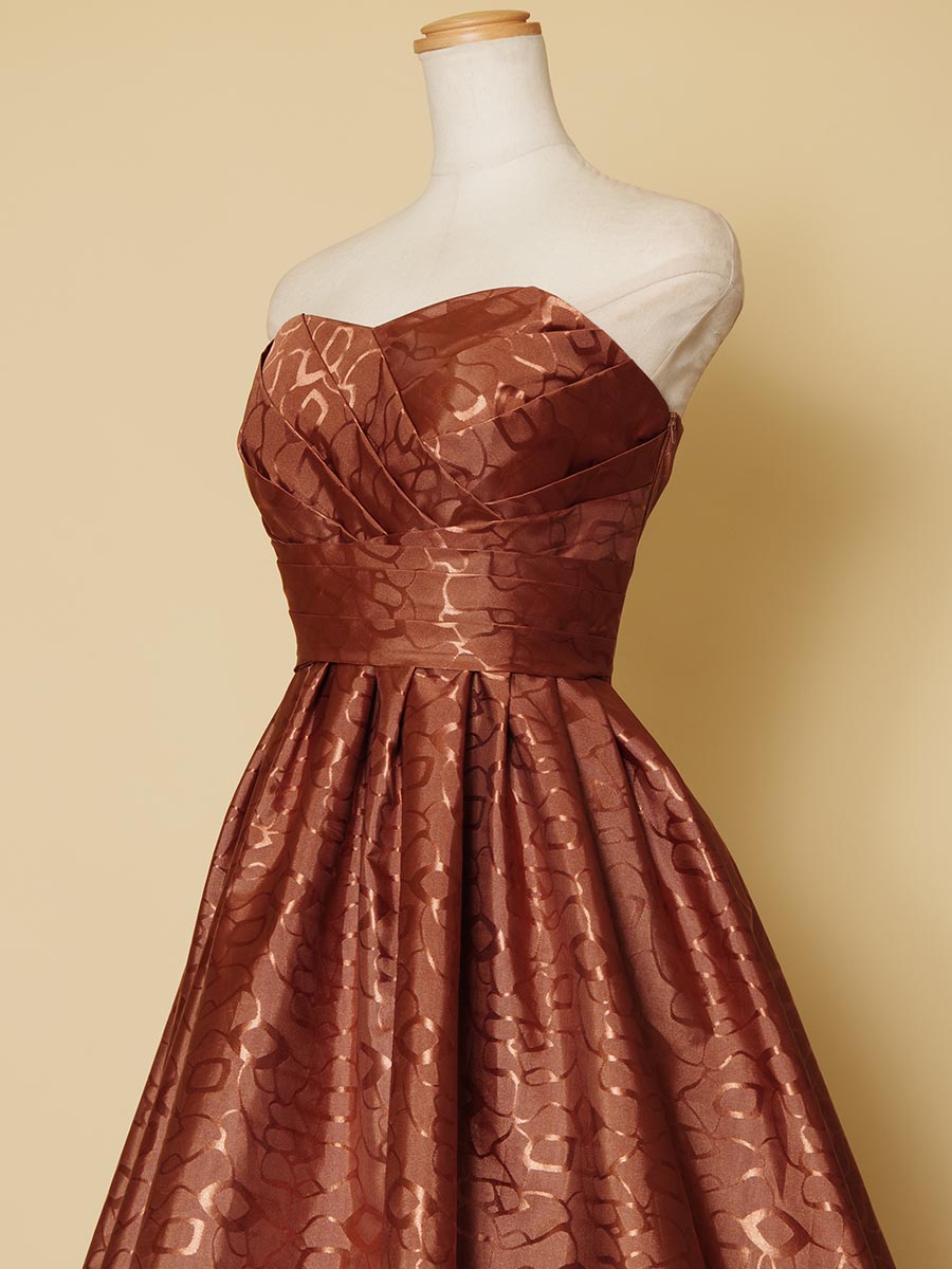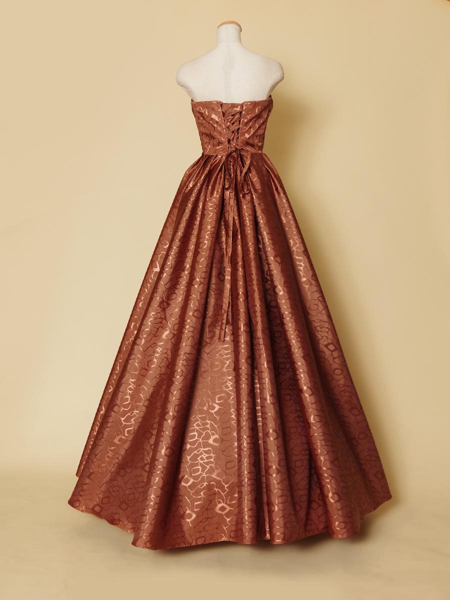 ブロンズカラーの光沢感の強いハリのある生地を使用した演奏会ロングドレス