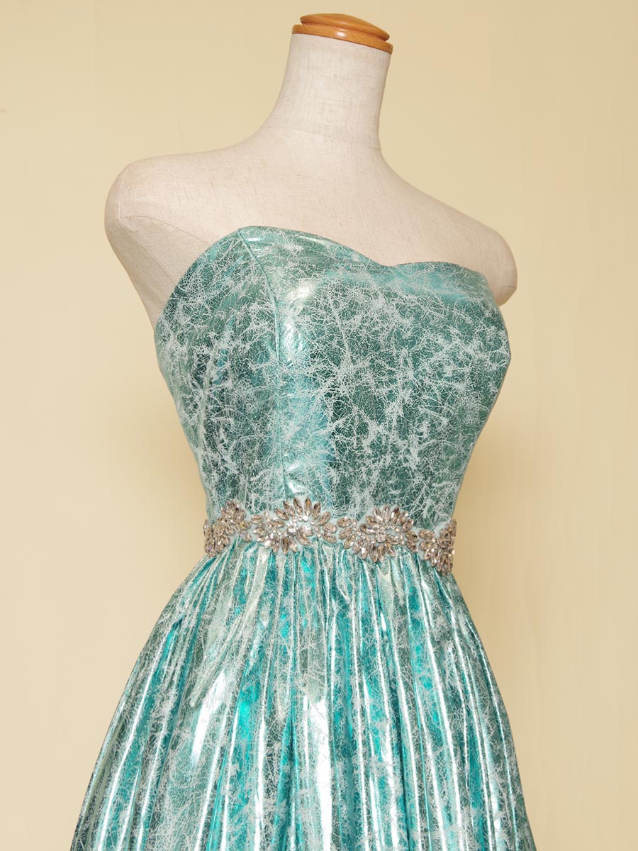 涼しげでスタイリッシュな夏場のコンサートシーズンに最適なメタリックアイスブルーカラードレス。