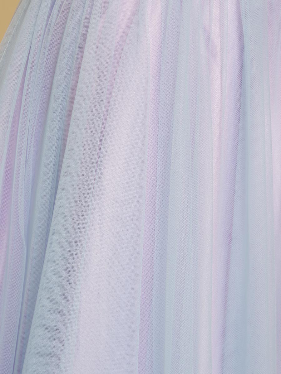 ブルーパープルのパステルカラー胸元フラワー刺繍デザイン×スカートチュール演奏会ドレス