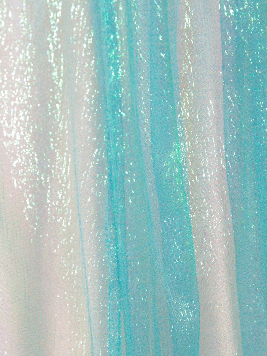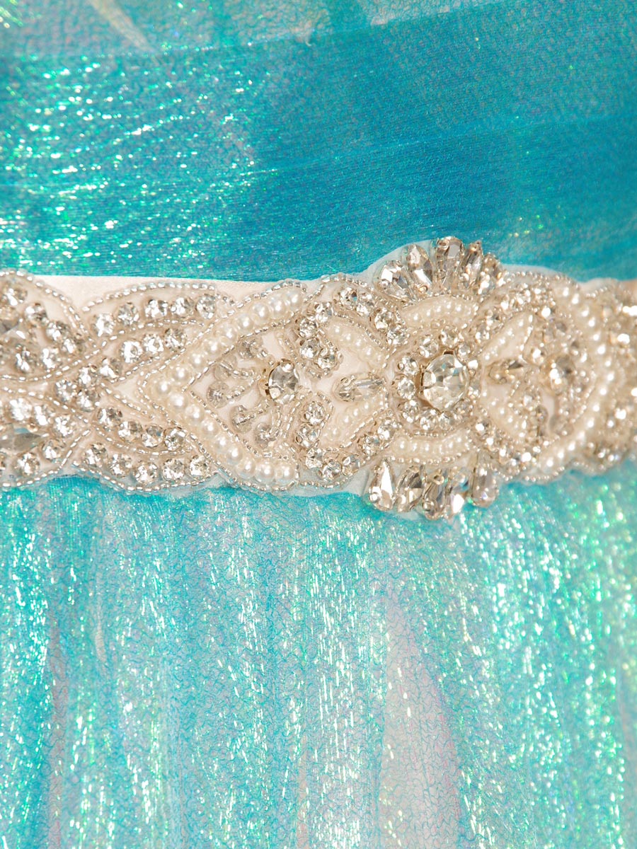 爽やかなターコイズブルーの反射の美しいチュールを使ったプリンセスラインステージドレス