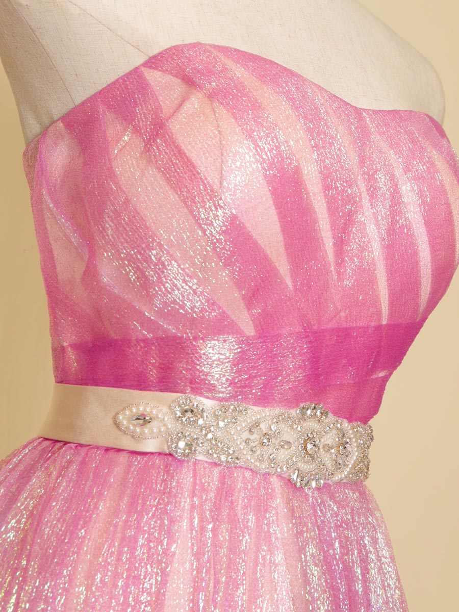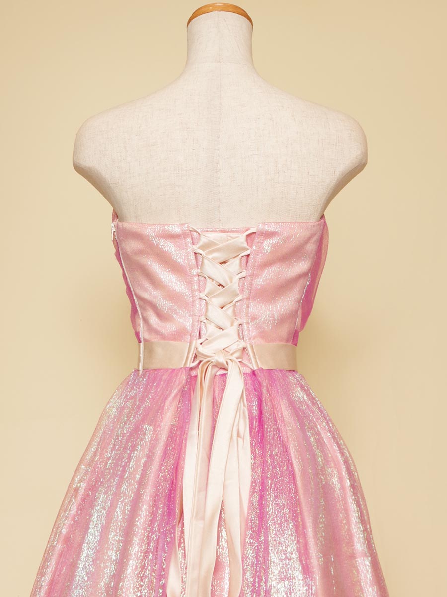 複数色に反射の色合いを表現してくれるチュール生地を全体に使用することで、キュートで甘いピンクの色合いを表現しています。