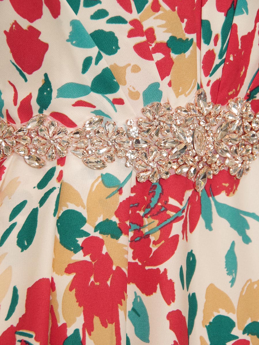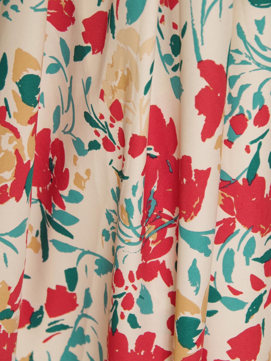 絵具のような風合いの花柄プリントのAラインステージドレス