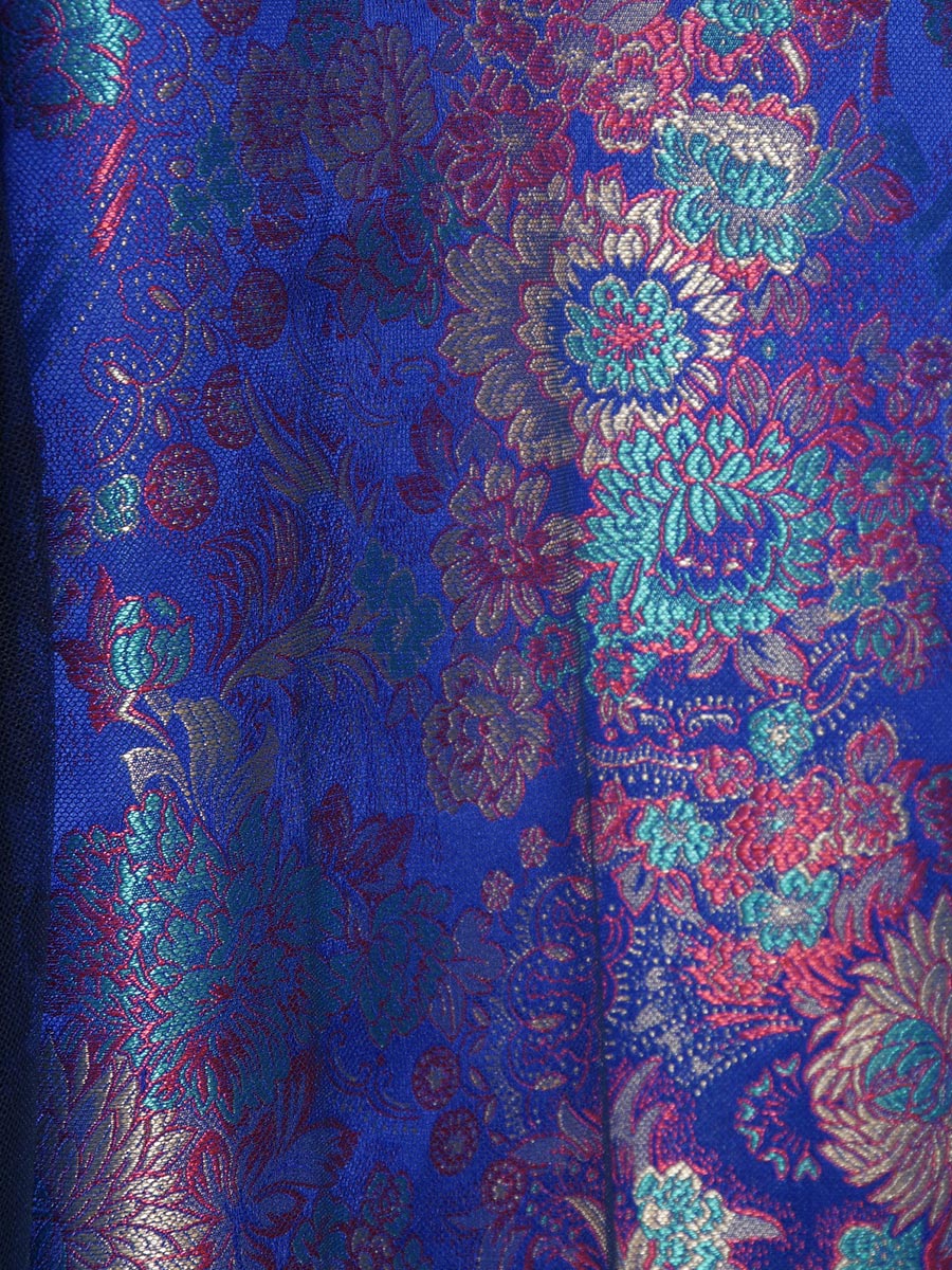 下地のジャガードにふんわりとブルーのチュールを重ねることで、柄模様を全面に出し過ぎず落ち着きのある美しさを演出しています。