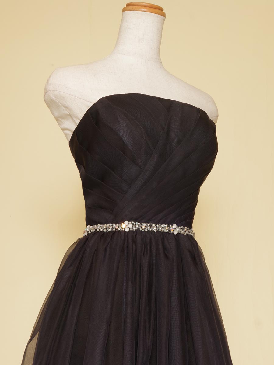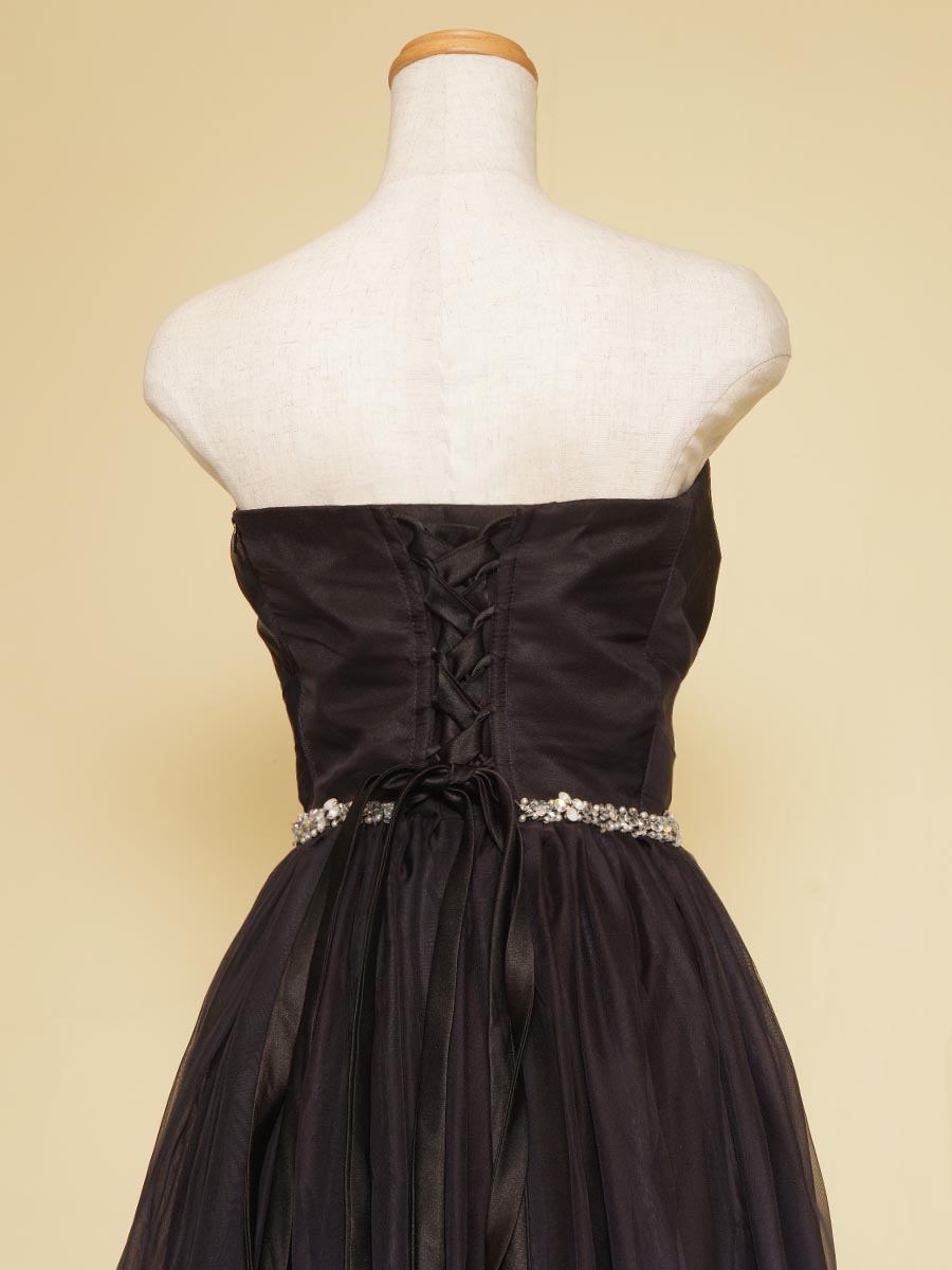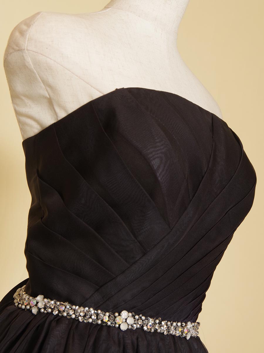 ウエストラインには煌びやかなコントラストを表現する為に、シルバーストーンのデザインベルトを配置して、舞台上のライトの反射を高級感溢れる感じに演出出来るようデザインいたしました。