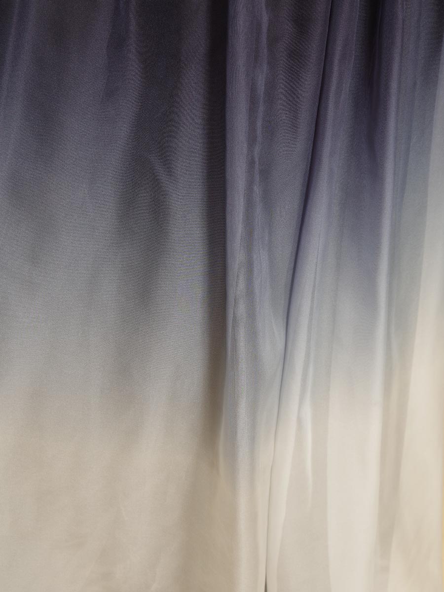 グラデーションデザインの藍染のような風合いを表現したステージロングドレス