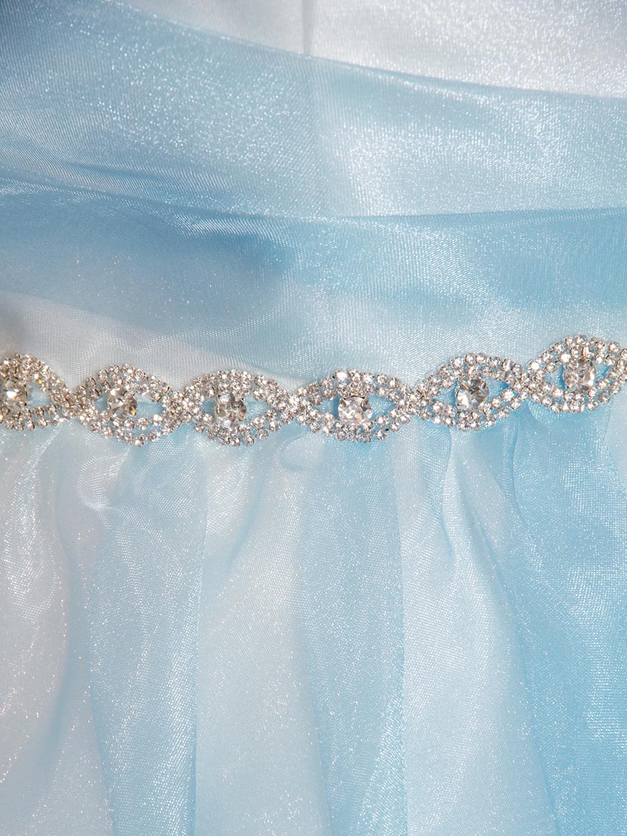 ウエストラインには透明感を更に強調するために、シルバーストーンのラインベルトを配置して煌びやかで美しいアクセントをプラスしました。