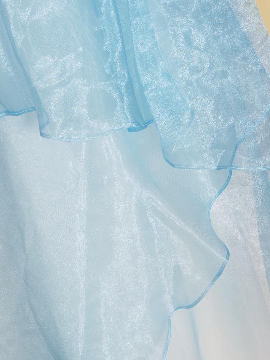 爽やかな清涼感溢れる印象のスカイブルーカラーのグラデーションオーガンジー生地でデザインされたレイヤードレープスタイルのステージドレス。