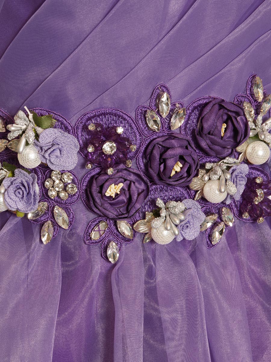 パープルカラーのオーガンジー×サテンのエレガントステージドレス