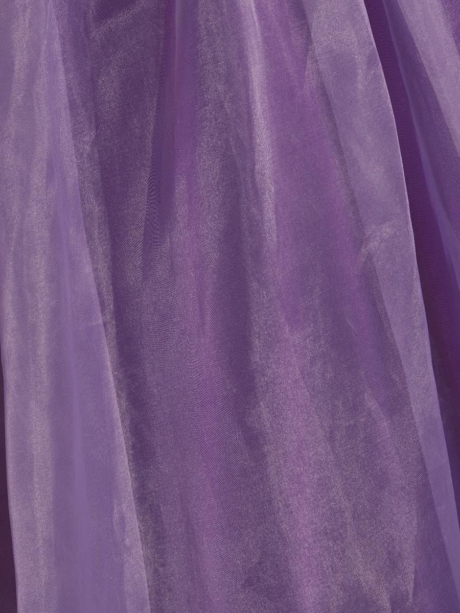 光沢感のあるパープルカラーのオーガンジーをサテン生地の下地全面にレイアウトした、シンプルスタイルのステージボリュームドレス。