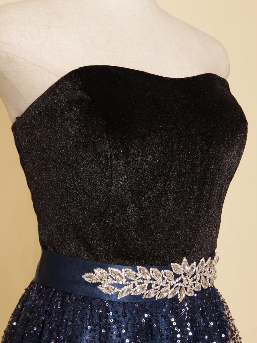 ダークネイビーカラーのスパンコールスカート×ベロアトップの大人カッコイイ演奏会ロングドレス