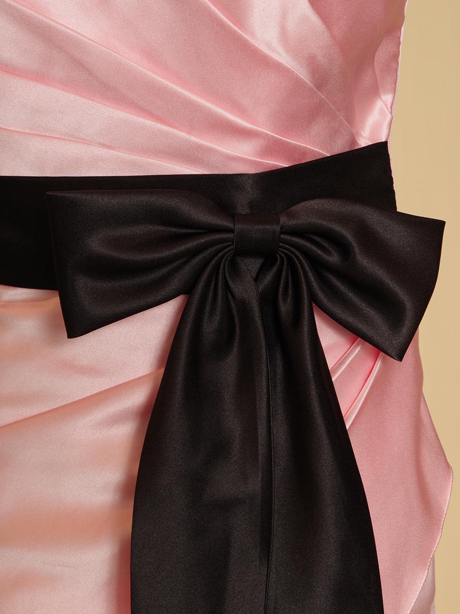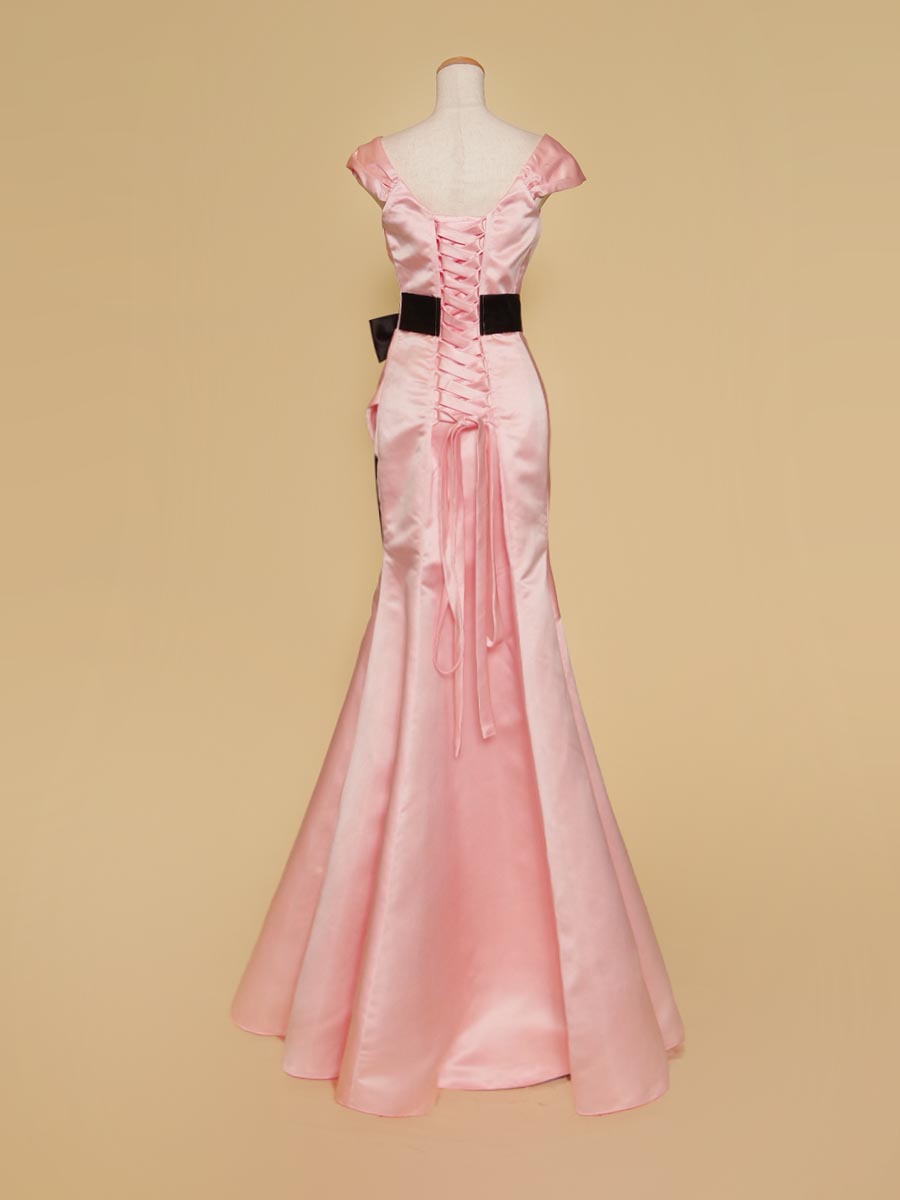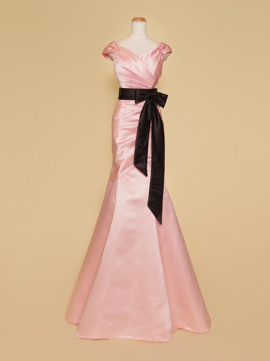パステルピンクカラーを基調に柔らかな印象を表現しながら、ウエストラインにクッキリとしたアクセントのブラックサテンのリボンデザインをレイアウトして程よい大人っぽさもプラスして、子供っぽくなり過ぎないデザインとなっております。
