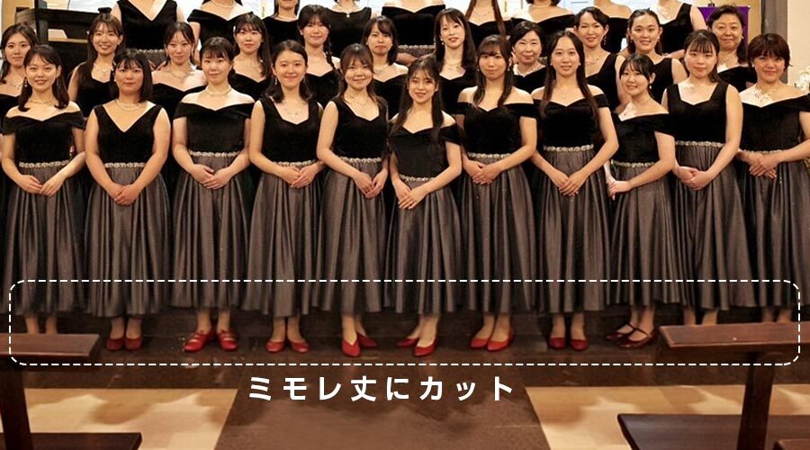 ドレスの統一感を残しつつ、合唱団のメンバーの方々の好みに合わせてデザインをチョイス頂く形となりました。
