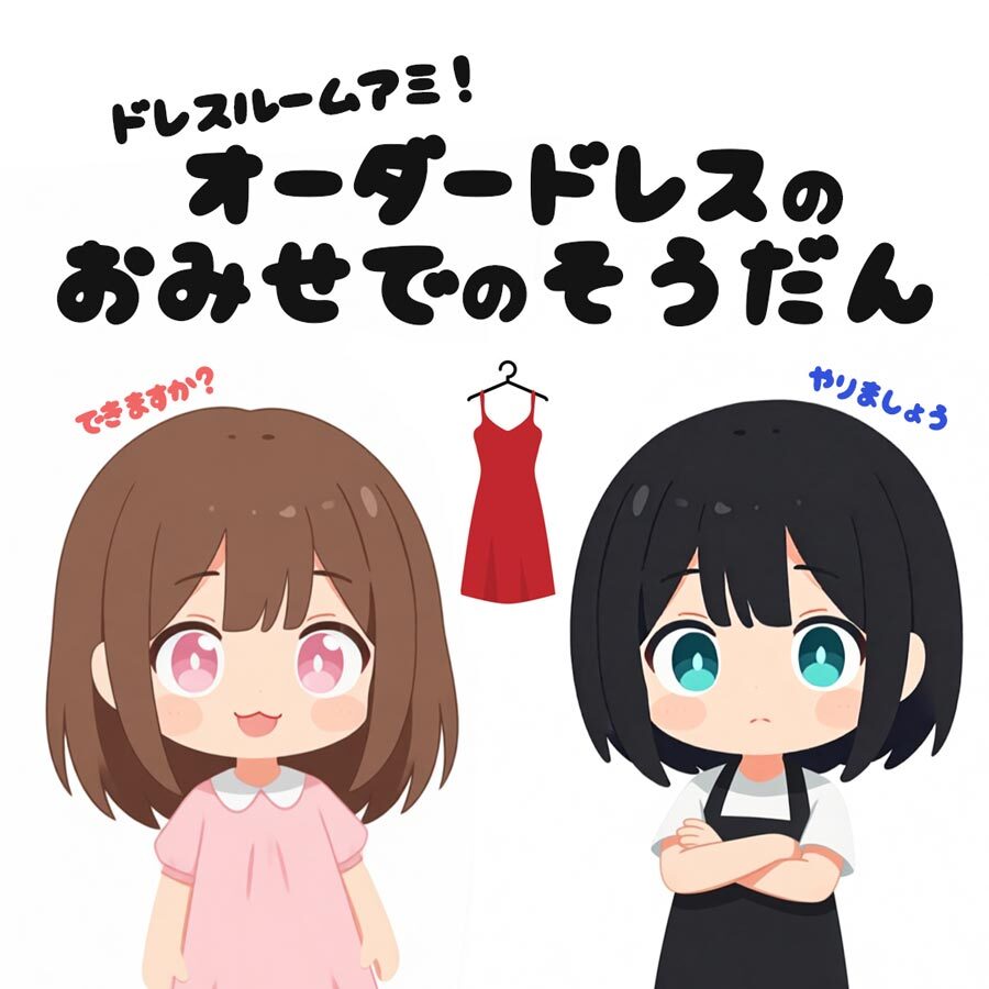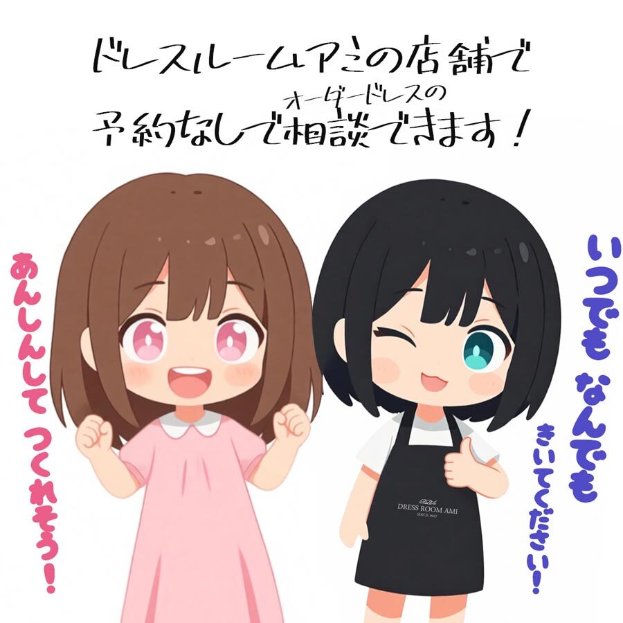 上記の漫画の様にドレスルームアミではオーダーメイドドレス製作の相談スタッフが