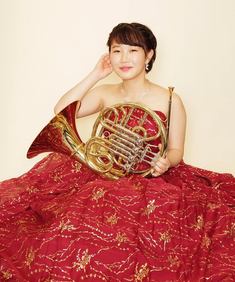 お母様とご一緒にドレスをご購入にご来店されてから、そのまま撮影を行われたホルン奏者のお客様のプロフィール写真です。