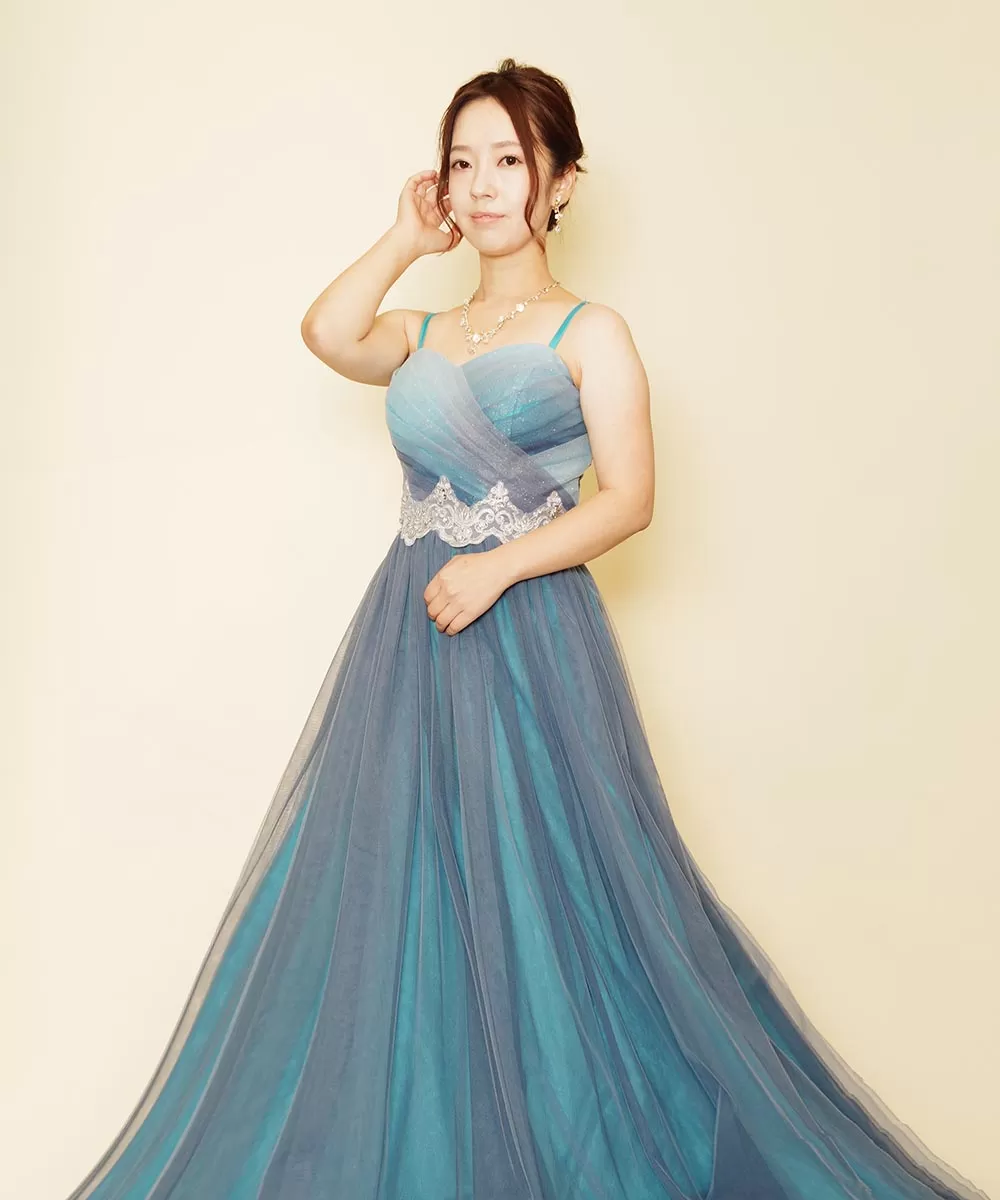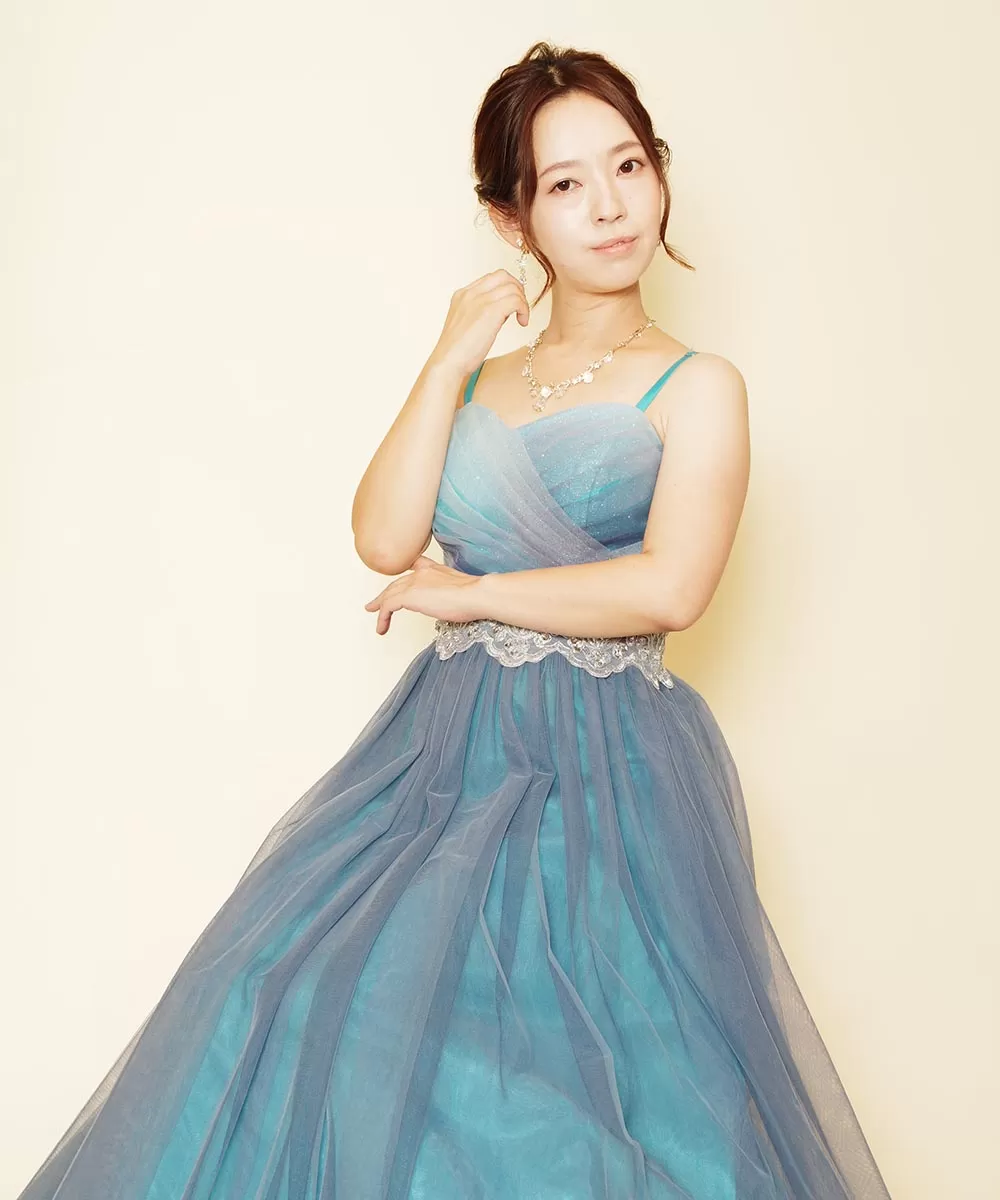 お二人ともにブルー系のドレスを選び演奏会用の写真を撮影いたしました。