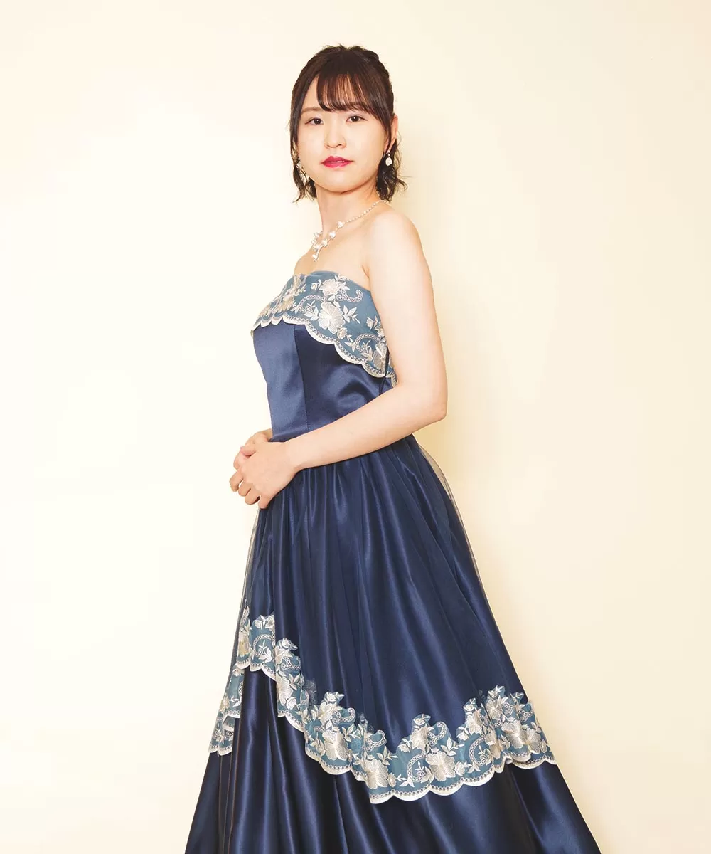 ドレスルームアミのクラシカルデザインステージドレスのmk072をレンタルして頂いてのプロフィール写真撮影を行わせて頂きました。