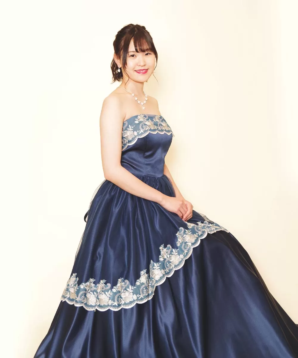 クラシカルデザインのネイビーカラードレスをレンタルしてのプロフィール写真撮影