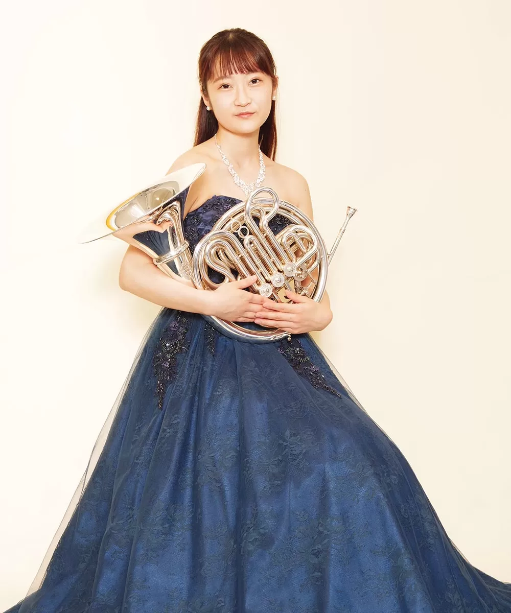 レンタルネイビードレスと2着の持ち込み衣裳で撮影を行ったホルン奏者様のプロフィール写真