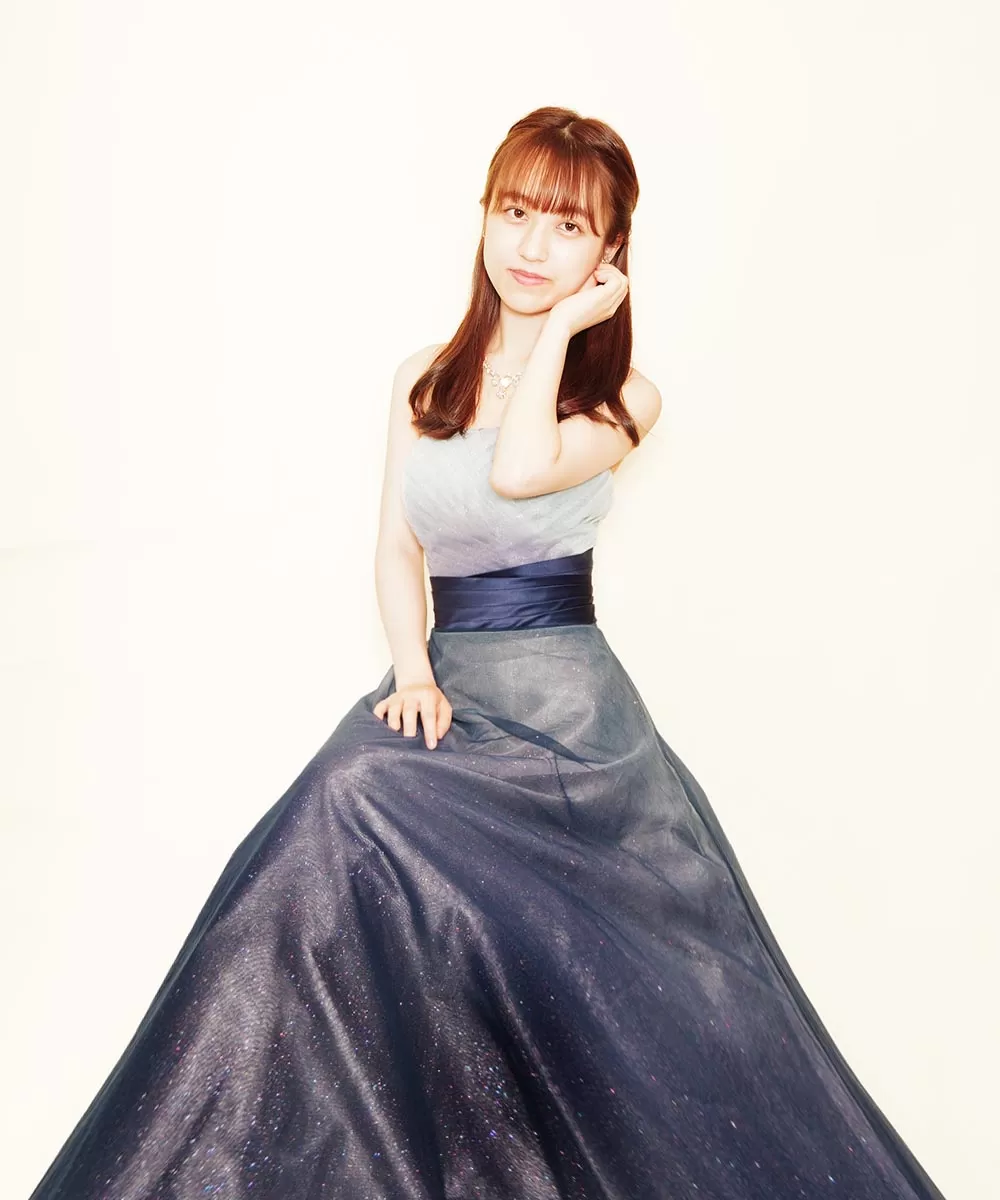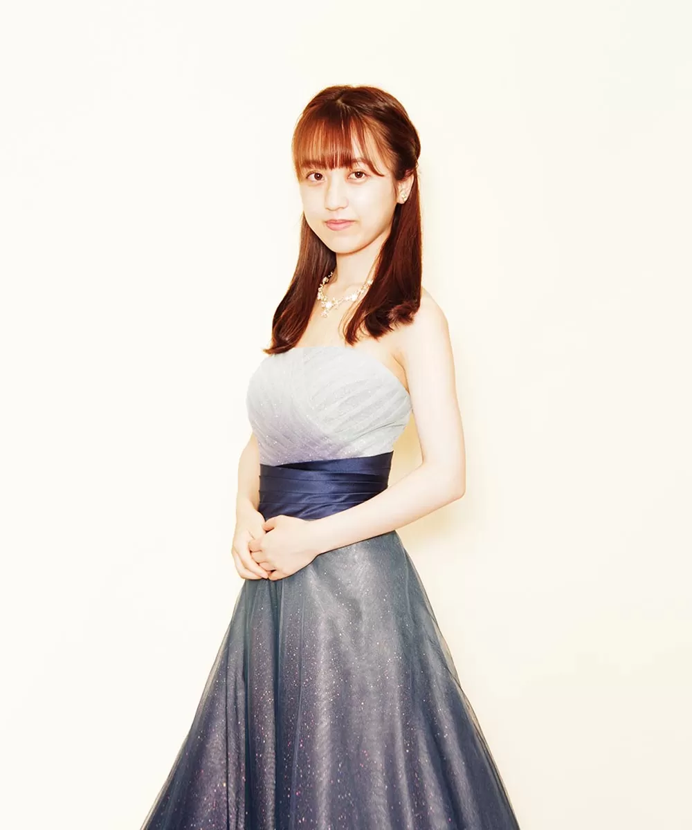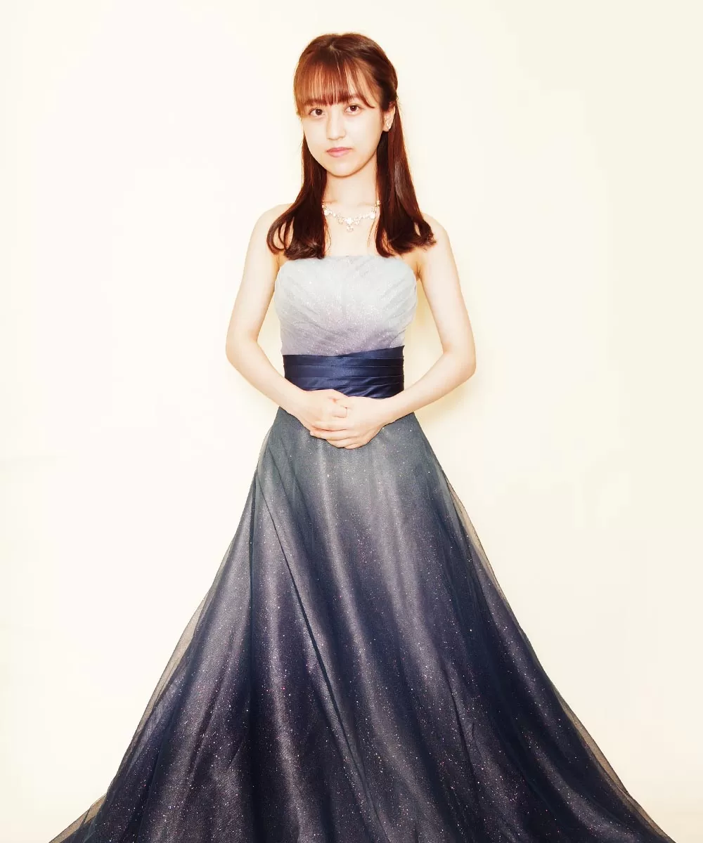 人気のグリッターネイビーカラードレスを購入頂いてから撮影を行った演奏家のお客様のお写真