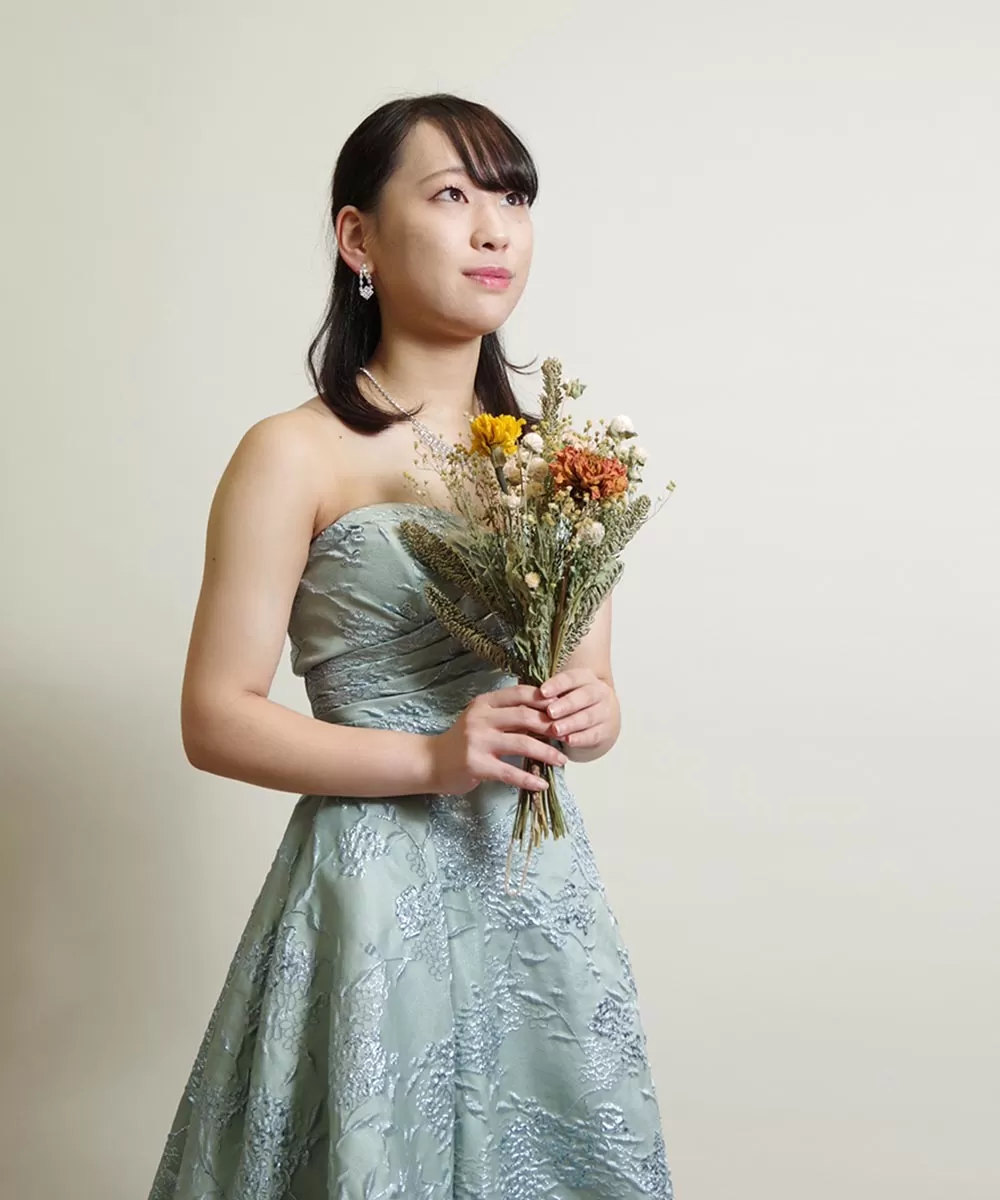 クラリネット奏者のお客様の宣材写真です。ドレスルームアミのジャガードのカラードレスをご使用いただいての撮影となりました。最初の撮影ではクラリネットを持ちながらポーズを取っていただき、後半ではドライフラワーを持っての撮影を行ないました。ドレスルームアミフォトスタジオでは楽器以外のこうした小道具のお持込も可能で、ドライフラワーに関しては、無料でレンタルすることが可能です。小道具を使うことによって、ちょっと雰囲気が違った独創的な雰囲気のプロフィール写真になるので、とてもオススメです!