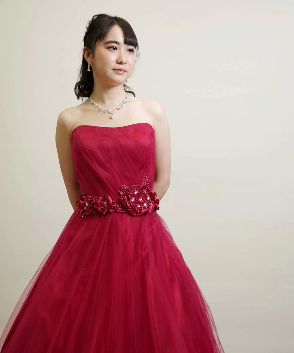 ドレスルームアミが主催を行なう声楽コンクールにご出演された声楽家のお客様の宣材写真です。ドレスルームアミで人気のレッドカラーのロングドレスを着用いただいての撮影でした。ドレスルームアミフォトスタジオでは、演奏会のプロフィール写真に限らず、コンクールやオーディション用の撮影も可能です。当日予約での撮影も可能となっておりますので、お写真の提出が迫っている場合にも安心して撮影が出来ますので、ぜひお気軽にご利用下さいませ。