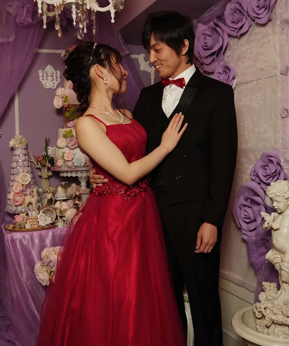 ドレスルームアミフォトスタジオで初めてフォトウェディングの撮影を担当させていただきました。出張撮影で新宿にある東京プチフールMini撮影スタジオ様にお邪魔させていただきました。スタジオ全体に所狭しと並べられたメルヘンチックな小道具が配置されていて、とても印象的な雰囲気の写真を撮れるスタジオでした。結婚を控えられたカップルのお客様で、とても仲睦まじい感じの写真を撮影することが出来ました。着用されているドレスはドレスルームアミの商品で、男性のタキシードは撮影用にレンタル提供を行っているものです。男性衣装をレンタルしたい方もドレスと同じ2000円でレンタルが可能ですので、お気軽にお申し付け下さい。また、今回の出張撮影サービス同様に、ドレスルームアミフォトスタジオでは、新宿区内に格安価格でカメラマンが撮影を行いに伺うプランをスタートいたしました。詳細は以下のリンクからチェックしてみてください。