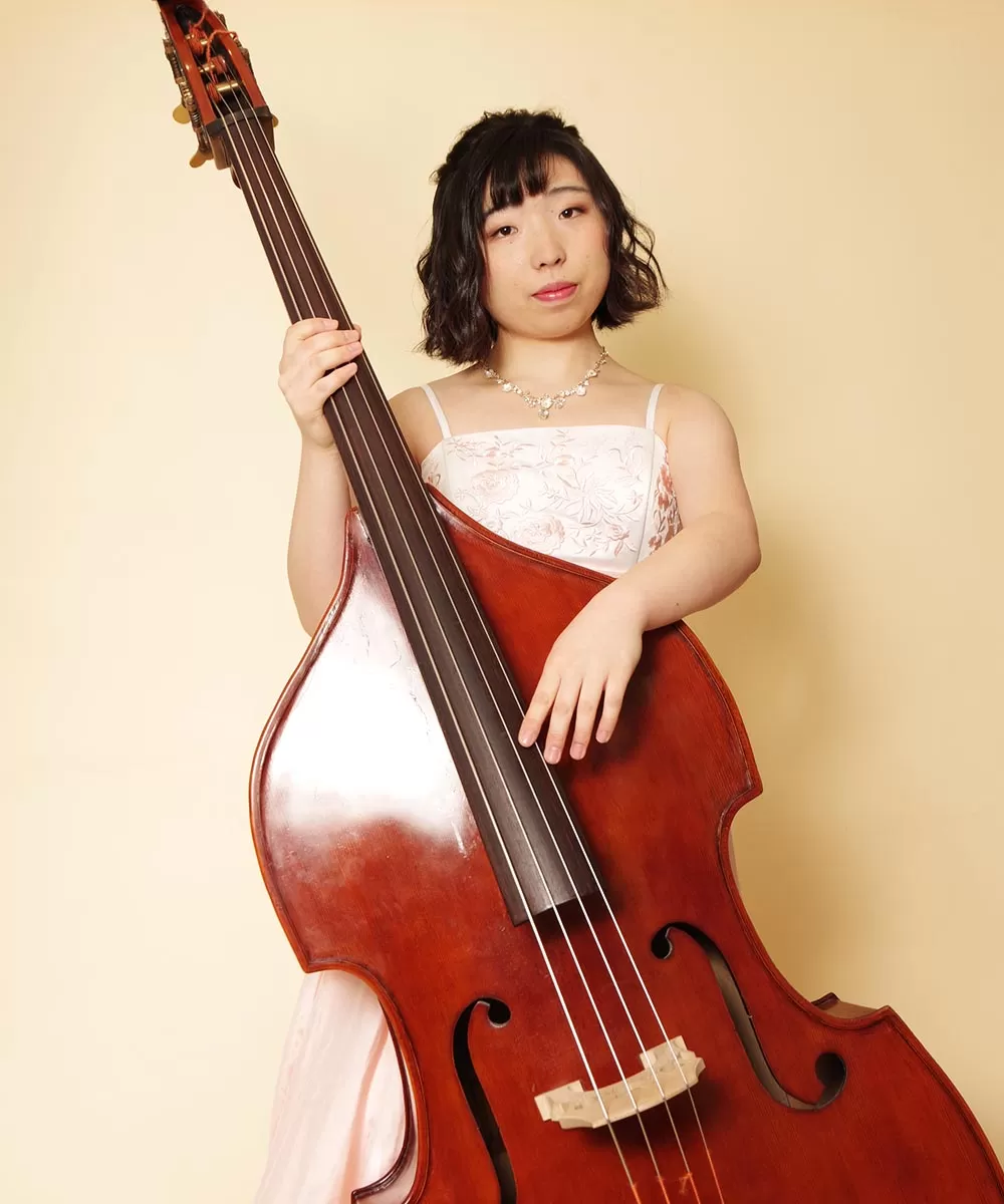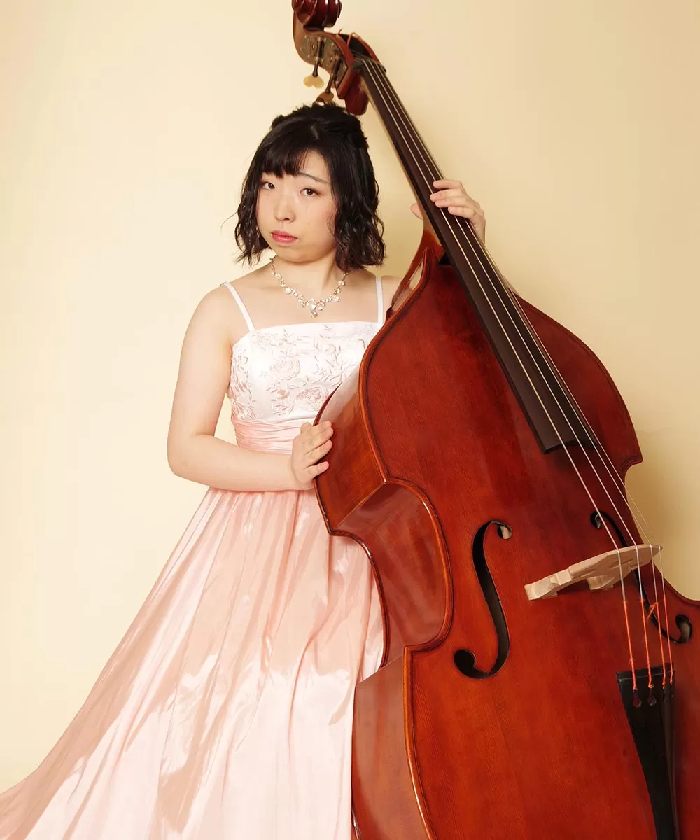 2回目のコントラバス撮影を行わせて頂いたお客様の宣材写真です。以前はシルバーカラーのドレスを着用されたお客様でしたが、今回のお客様はピンクのカラードレスで明るくキュートな雰囲気の写真に仕上がりました。出来るだけコントラバスがフレームインするように、アップと引きの画角を織り交ぜながら撮影を進めてまいりました。更にコントラバスの角度もカットごとに細かく変化を加えて頂き、光の当たり方や楽器の見え方にも変化が生まれるように撮っています。コントラバスのような大きな楽器の撮影でも、立ち姿勢から椅子座り姿勢、床に座ったポージングを取り入れています。ネックレスはドレスルームアミフォトスタジオで無料でお貸出しさせて頂いたものです。ドレスレンタルサービスを受けていないお客様でも、ネックレスのお貸出しが可能ですので、ご希望のお客様は是非お気軽にリクエストください。